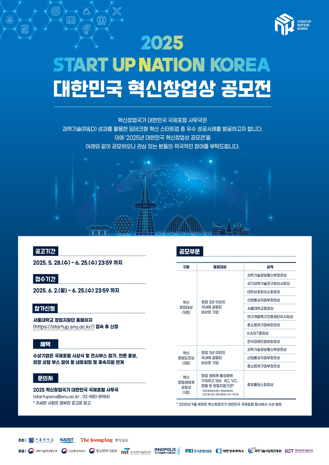 [붙임1] 2025 대한민국 혁신창업상 공모전 공고.pdf (182.2K)