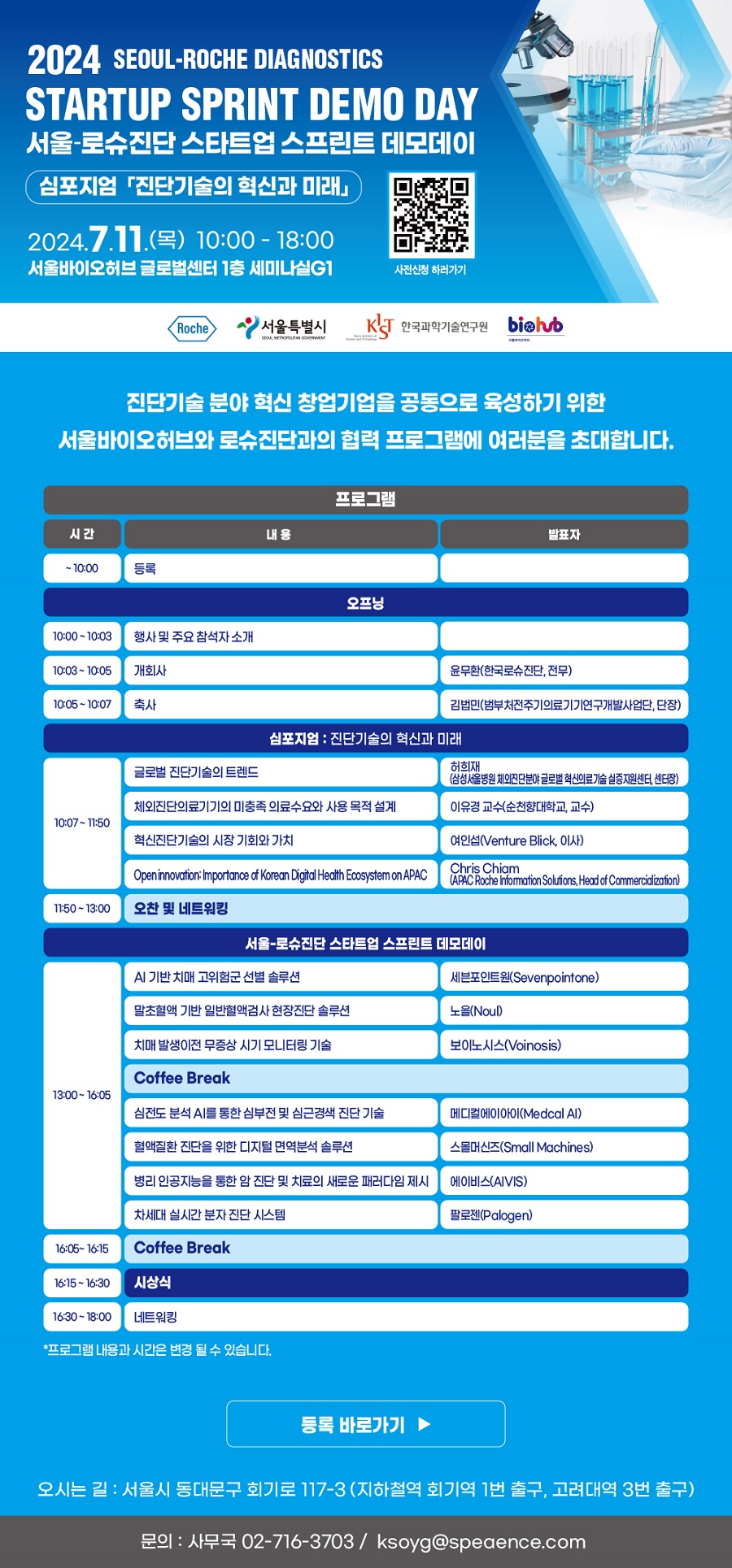 ㆍ행사명 : 2024 서울-로슈진단 스타트업 스프린트 데모데이(심포지엄:진단기술의 혁신과 미래)
