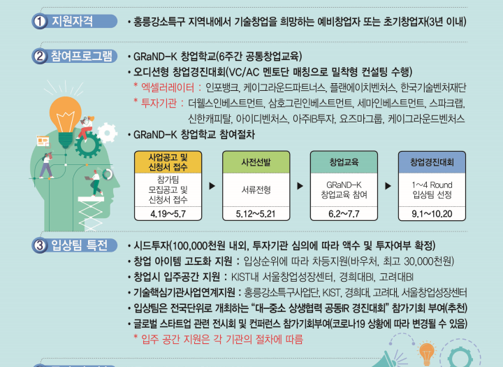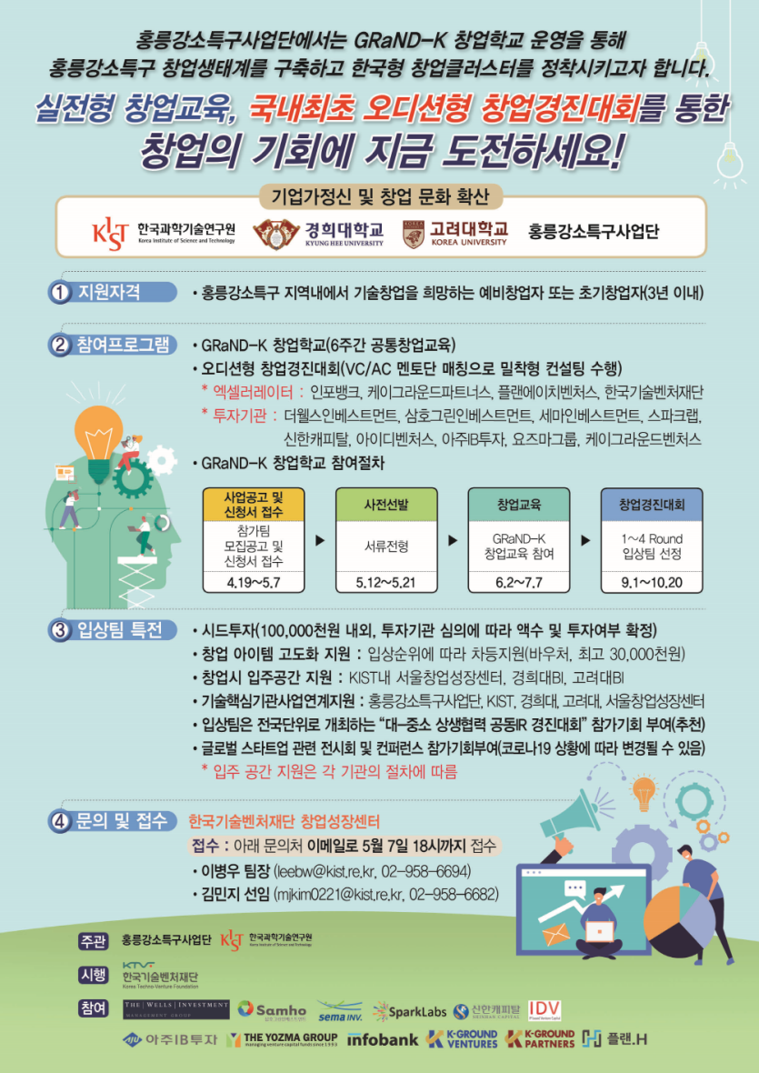 GRaND-K 교육 모집기간 2021-04-19~2021-05-07 모임기간 모임장소 지원자격 홍릉강소특구 지역내에서 기술창업을 희망하는 예비창업자 또는 초기창업자(3년 이내) 기타 국내 최초 오디션형 창업경진대회 교육 페이지 정보 작성자 홍릉강소특구사업단 운영자 댓글 0건 조회 170회 작성일 21-11-25 11:48 목록으로 신청하기 본문 상세 정보 목록 게시판 리스트 옵션 검색 닫기