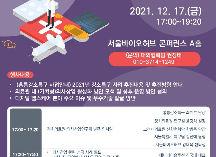 서울홍릉강소특구 경희의료원 창업연구회 발대식 교육 모집기간 2021-12-17~2021-12-17 모임기간 2021-12-17 / 금요일 17 모임장소 서울바이오허브 콘퍼런스 A홀 지원자격 기타 서울홍릉강소특구 경희의료원 창업연구회 발대식 진행 교육 페이지 정보 작성자 홍릉강소특구사업단 운영자 댓글 0건 조회 345회 작성일 22-01-26 14:52 목록으로 신청하기 본문 상세 정보 목록 게시판 리스트 옵션 검색 닫기