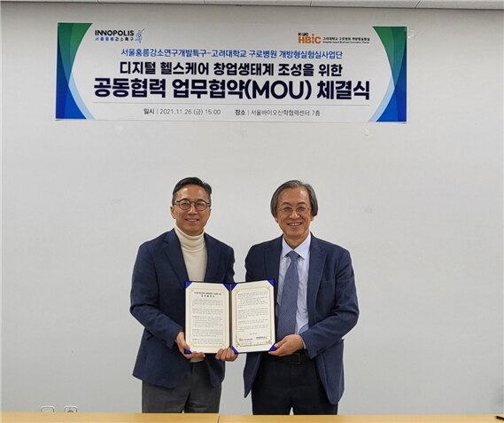 고려대 구로병원 개방형실험실사업단과는 디지털 헬스케어 분야와 관련해 ▲ 기술사업화와 활성화에 관한 상호협력 ▲R&D 파트너링 및 네트워크 구축 ▲산·학·연·병·금 생태계 조성 ▲의사 의대생 기획형 창업 프로그램 운영 협력 등을 하기로 했다.