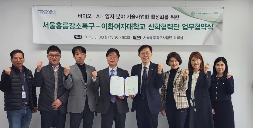 서울홍릉강소특구는 이화여자대학교 산학협력단과 지난달 31일 업무협약(MOU)을 체결했다고 3일 밝혔다. 양기관은 이번 협약을 통해 바이오·AI·양자 분야의 기술사업화 활성화에 상호 협력하기로 했다.