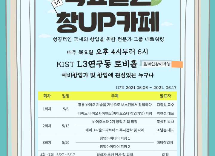 목요일엔 창UP카페 네트워킹 모집기간 2021-05-06~2021-06-17 모임기간 2021-05-06 ~ 2021-06-17 /매주 목요일 모임장소 KIST L3 연구동 로비홀 지원자격 예비창업가 및 창업에 관심있는 누구나 기타 성공적인 국내외 창업을 위한 전문가 그룹 네트워킹 네트워킹 페이지 정보 작성자 홍릉강소특구사업단 운영자 댓글 0건 조회 138회 작성일 21-12-30 11:41 목록으로 신청하기 본문 상세 정보 목록